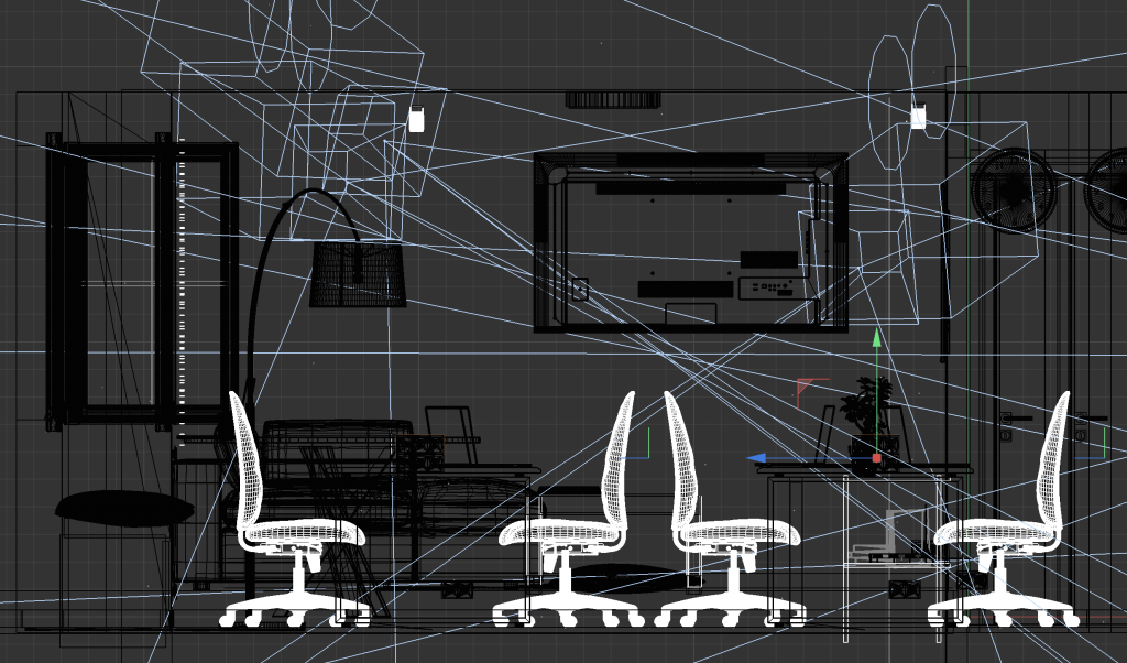 • A partir de los planos de la arquitecta, reconstruí en Cinema 4D toda la oficina.