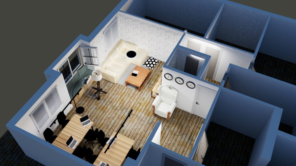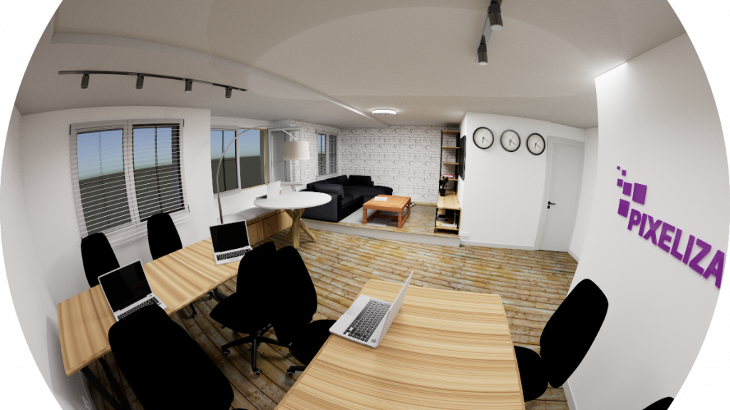 El equipo de dirección de Pixeliza iba a reformar las nuevas oficinas, pero el proceso estaba ralentizado por dudas en acabados, disposiciones y presupuestos. Los planos eran poco claros para algunos perfiles y las decisiones se eternizaban. La solución fue recrear todo el entorno en 3D para poder visualizar con precisión distintas configuraciones antes de ejecutar obra.