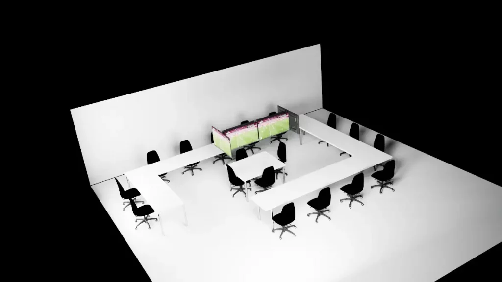 - Se instaló un sistema funcional, visualmente potente y adaptado a las necesidades reales del entorno. Al final, optamos por un diseño de rectángulo con 8 monitores (3 x 1 x 3 x 1) utilizando los avanzados monitores Samsung VM55T-U con MagicInfo.